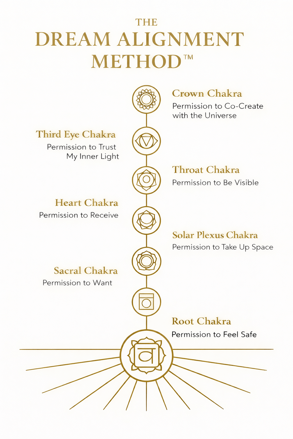 The Dream Alignment Method™ works at the root of your manifestation blocks — your chakras, your subconscious patterns, and your nervous system.
